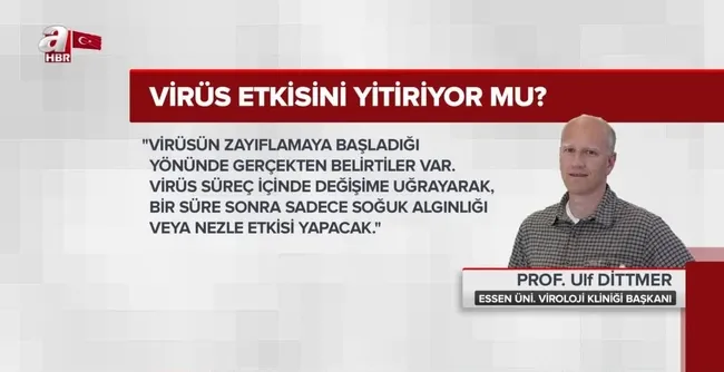 Dittmer, “Virüsün zayıflamaya başladığı yönünde gerçekten belirtiler var. Virüs süreç içinde değişime uğrayarak, bir süre sonra sadece soğuk algınlığı veya nezle etkisi yapacak.” ifadelerini kullandı.