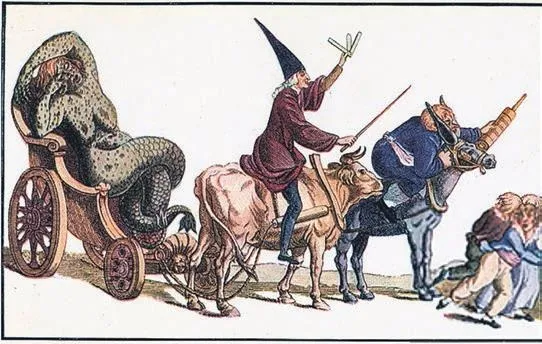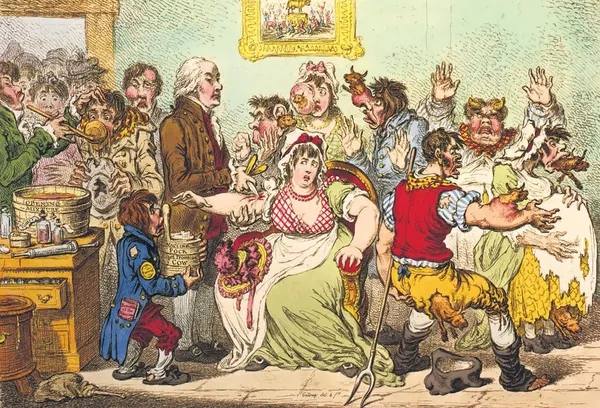 Çiçek aşısı aleyhine 1802 tarihli bir karikatür.